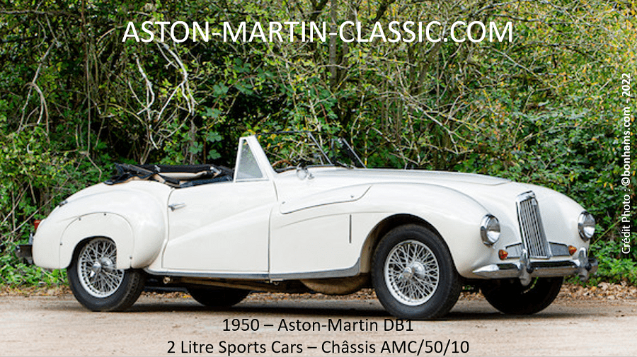 L’Aston-Martin DB1 (2 Litre Sports Cars) est une production du début de l’ère David Brown entre 1948 et 1950. Seulement 15 exemplaires seront produits. Le cabriolet châssis AMC/50/10 a été vendu en cours d’année 1950 et vraisemblablement au Royaume-Uni.