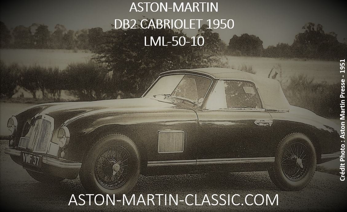 Sous l’impulsion de Sir David Brown, une version cabriolet de la DB2 sort de l’usine au mois de mai 1950. Le châssis LML/50/10 est de couleur verte « Cadillac green » et pourvu d’un moteur standard de 105 chevaux numéroté LB6B/50/104. Son premier propriétaire n’est autre que David Brown qui enregistre la voiture le 4 mai 1950 avec la plaque d’immatriculation VMF 37.