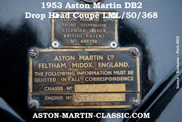 Sa fiche usine indique un changement de motorisation en version standard, moins puissante, qui ne développe que 105ch. La plaque d’origine a été modifiée. Aucune explication n’est assortie de ce changement moteur. Le numéro de moteur LB6B/50/596A est alors attribué au châssis LML/50/368 qui proviendrait d’une autre DB2, le châssis LML/50/362.